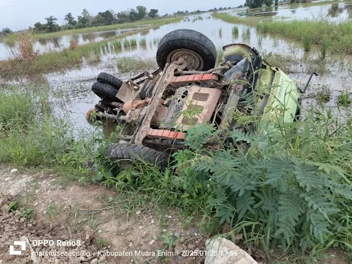 Muara Enim, Peningkatan ruas jalan penghubung dari simpang desa harapan mulia menuju desa Mulia Abadi kecamatan muara belida kabupaten Muara Enim Sumatera Selatan ( Jumat,24/1/2025) kembali memakan korban